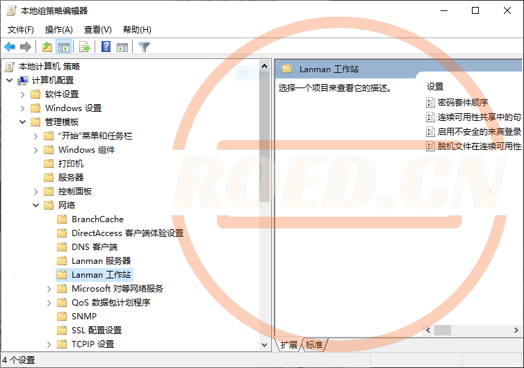 2.寻找文件夹:计算机配置→管理模板→网络→Lanman工作站
