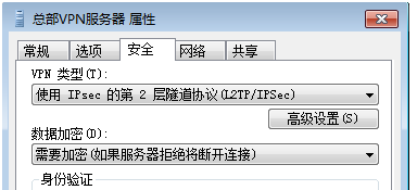在 网络和共享中心 >> 更改适配器设置 中找到VPN客户端,右键 并选择 属性,在 网络 中选择VPN类型为 使用IPSec的第2层隧道协议(L2TP/IPSec),并点击 高级设置,如下图: